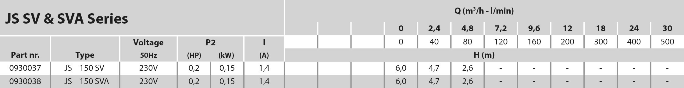 Dykpumpe rustfri stål 304 1 1/4" indvendig gevind 1,4A 230VAC sort type JS 150 SVA Vortex med flyde kontakt