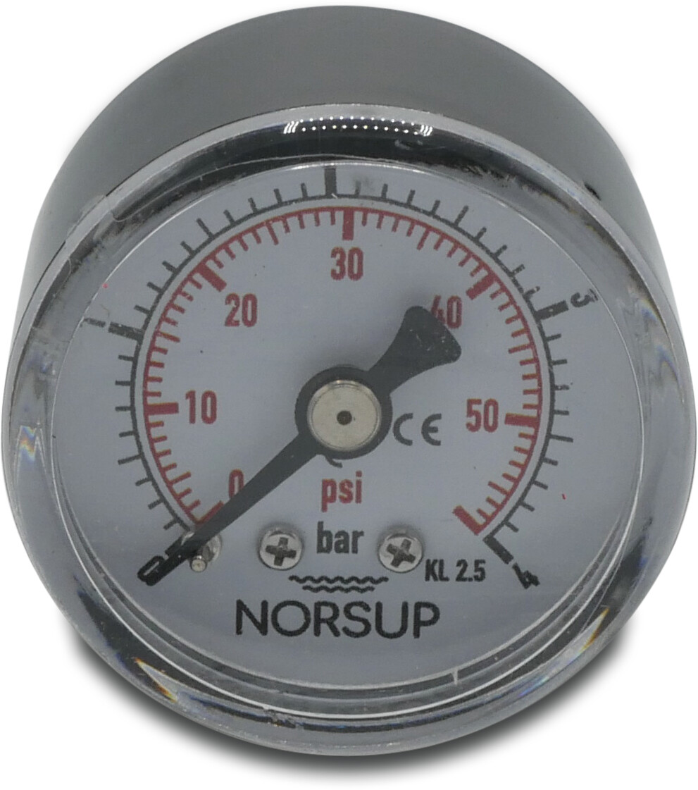 Norsup Manometer 40 mm udv. gevind 0 - 4bar sort type tør bund tilslutning 1/8"