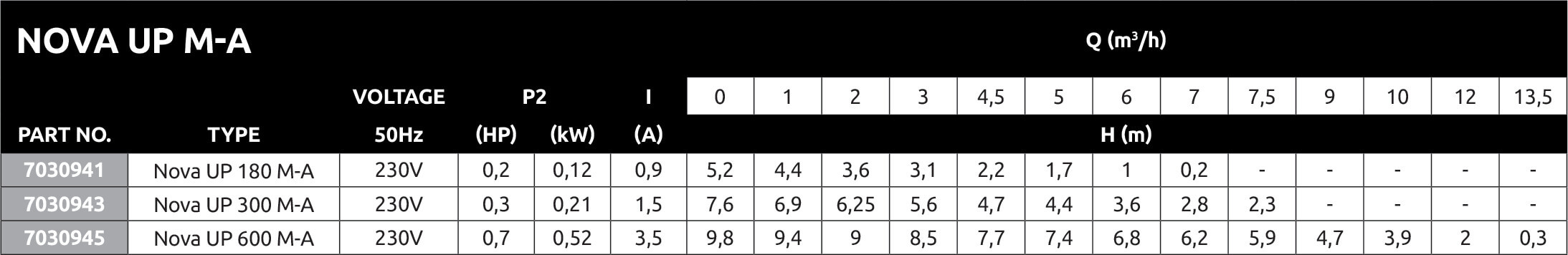 DAB Dykpumpe forstærket plastik 1" udvendig gevind 0,9A 230VAC grøn type Nova UP 180 M-A med flyde kontakt