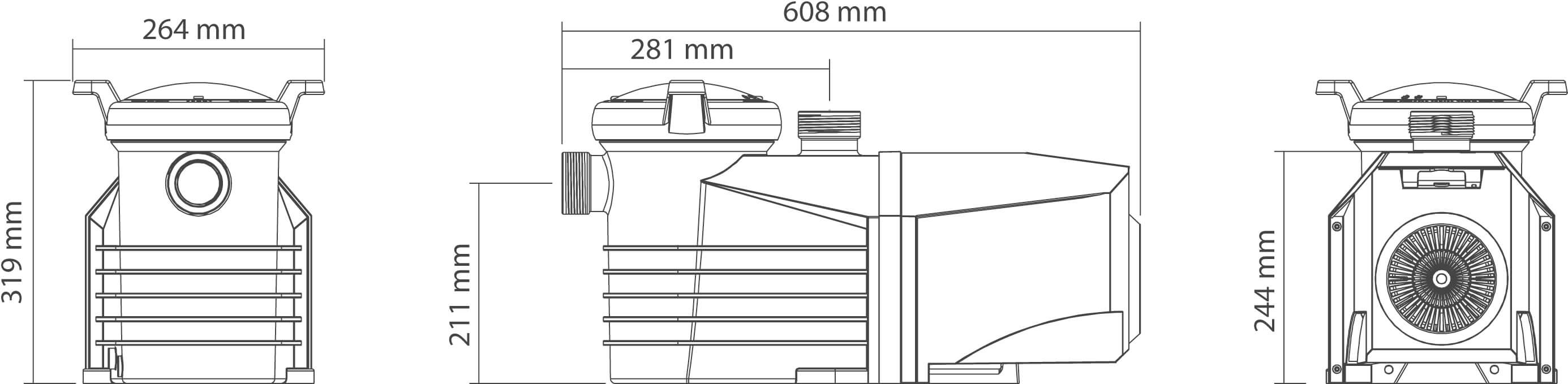 Flotide Inverter poolpumpe 50/63 mm limforbindelse 3,8A 230VAC sort/blå type ETV 165
