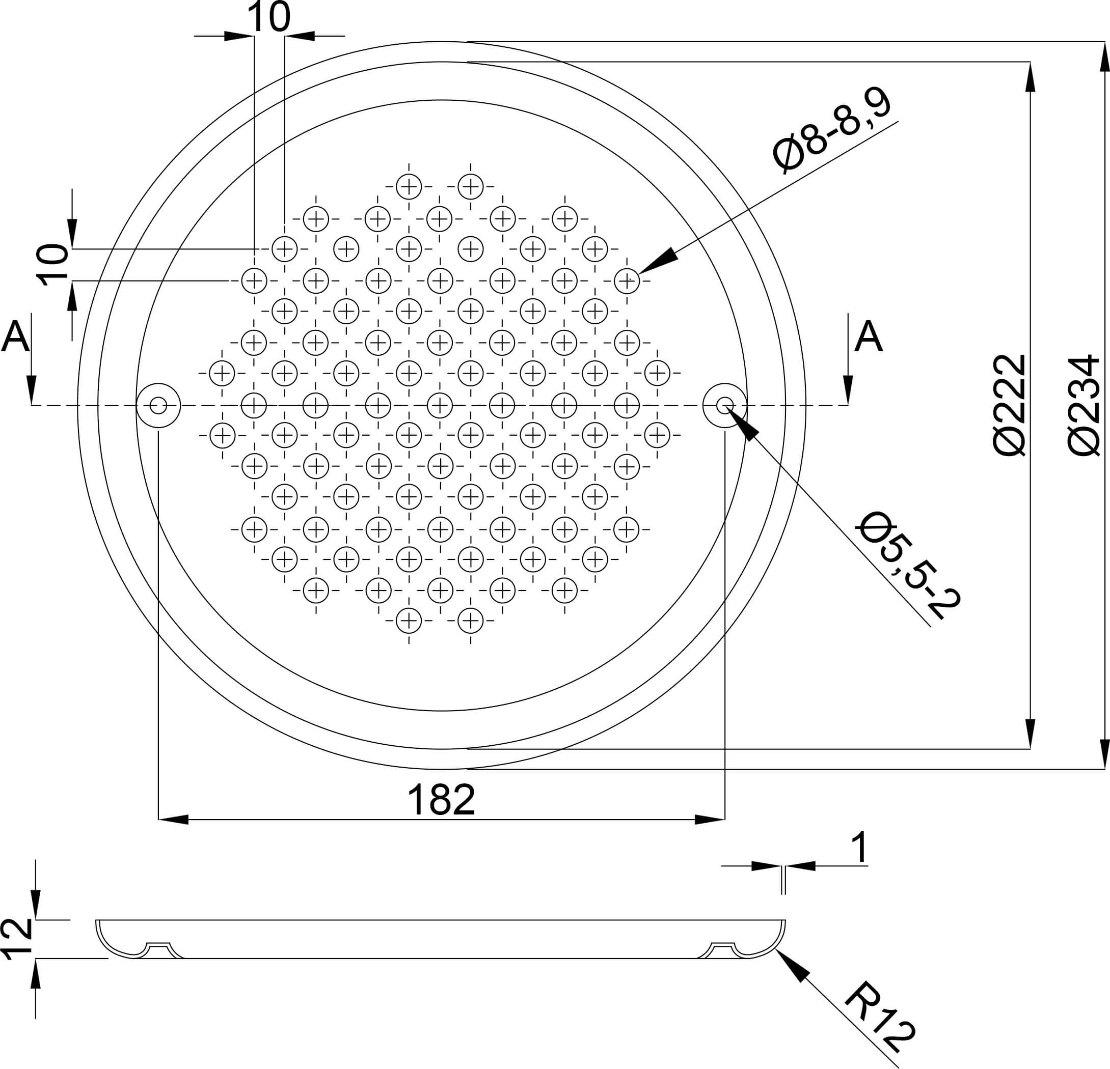Ocean Dæksel til hovedafløb rustfri stål 316 222 mm rustfrit stål type Standard