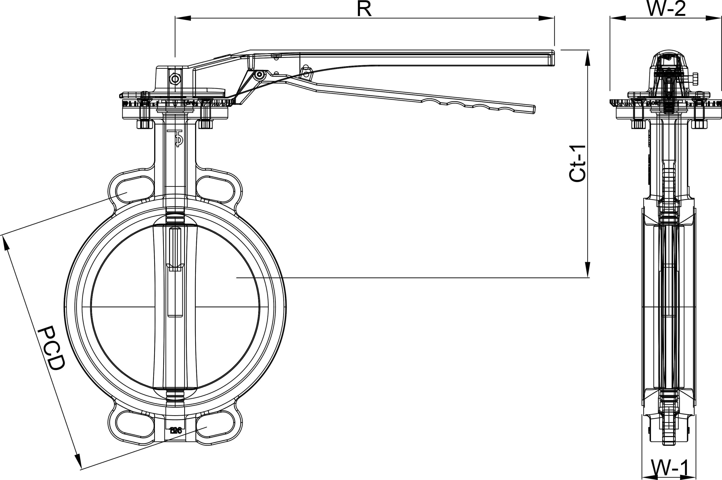 Profec Butterflyventil duktilt jern (GGG40) epoxy belægning DN80 flange 10bar DN80 blå PN6/10/16 type 601 Skive rustfri stål 316