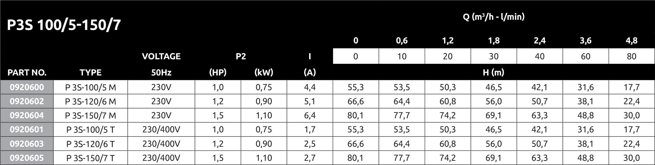 Foras Mehrstufige Kreiselpumpe Edelstahl 304 1" Innengewinde 7bar 5,1A 230VAC Blau Typ P 3S-120/6 M