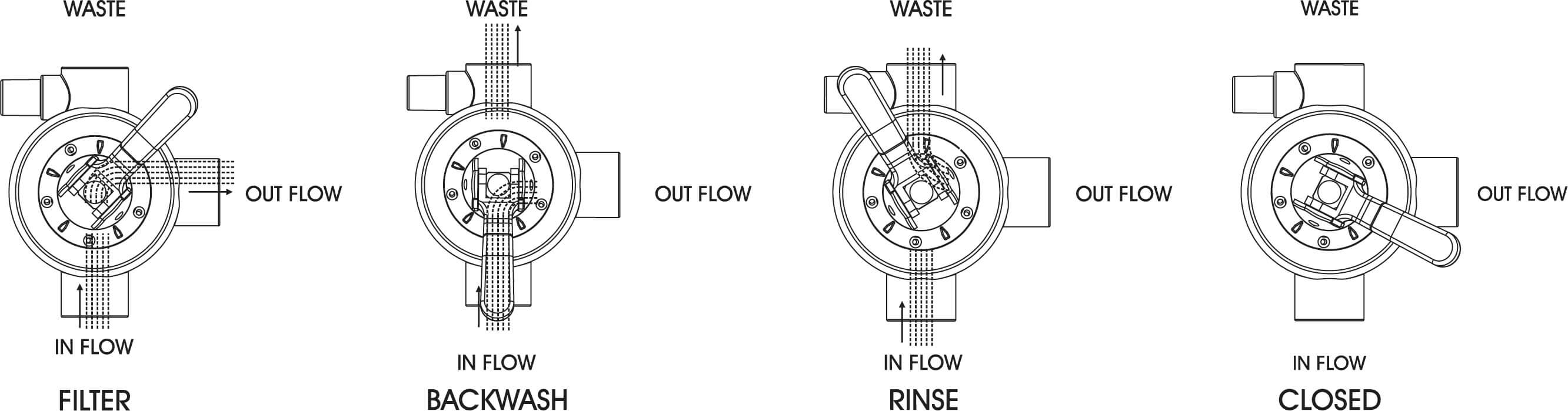 Flotide Mehrwegeventile 1 1/2" Innengewinde 4bar Schwarz für top mount Filter Typ Mega 6-wege Schelle Ventil