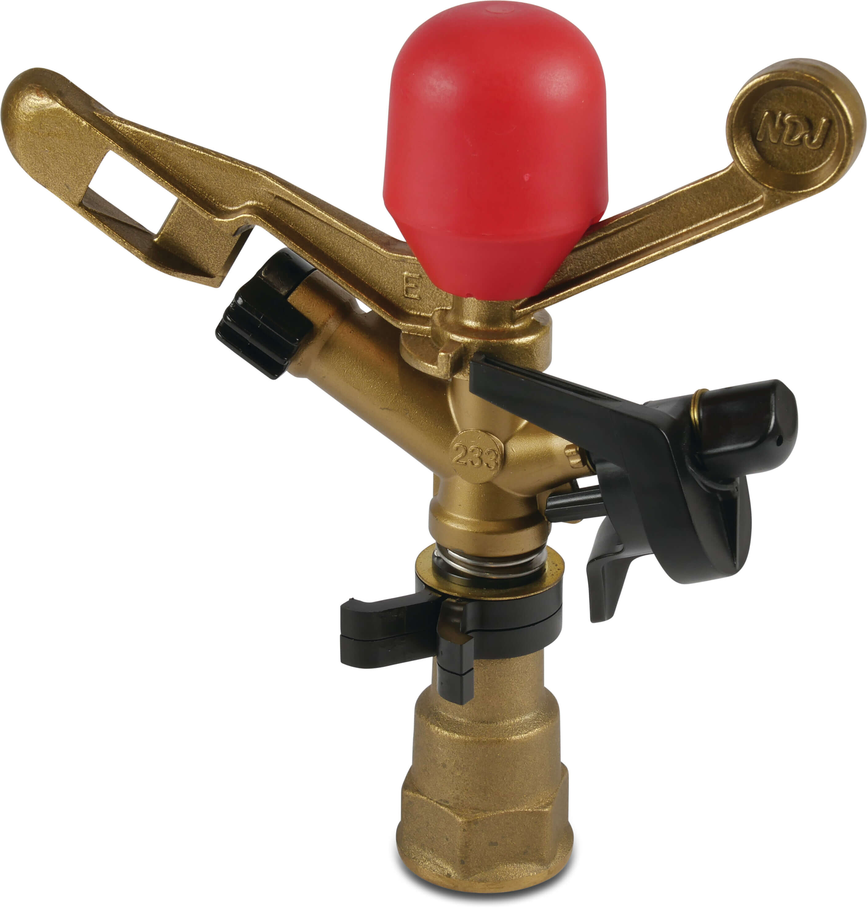 The NaanDan Part circle sprinkler 233PC brass is mainly used for field irrigation or orchard irrigation, such as apple tree gardens. The sprinkler has a unique plastic part-circle mechanism which you can change manually. The angle of the rotation is easy to adjust manualy and therefore ideal for irrigation at the border of your field.