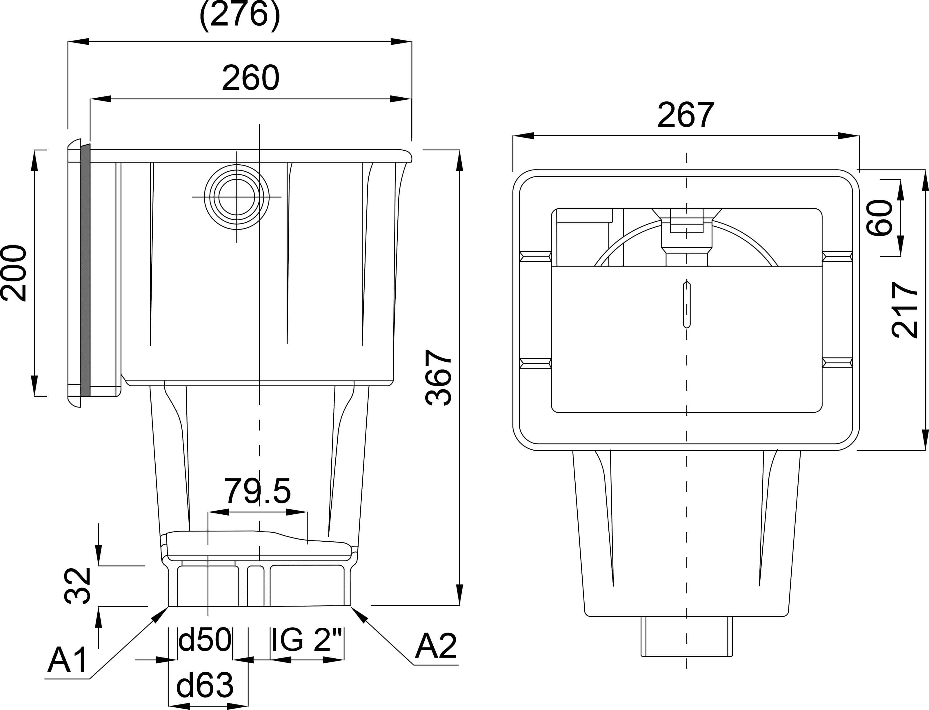 Ocean Skimmer ABS 2" x 50 mm glue socket x female thread white type Standard with ss M5 thread