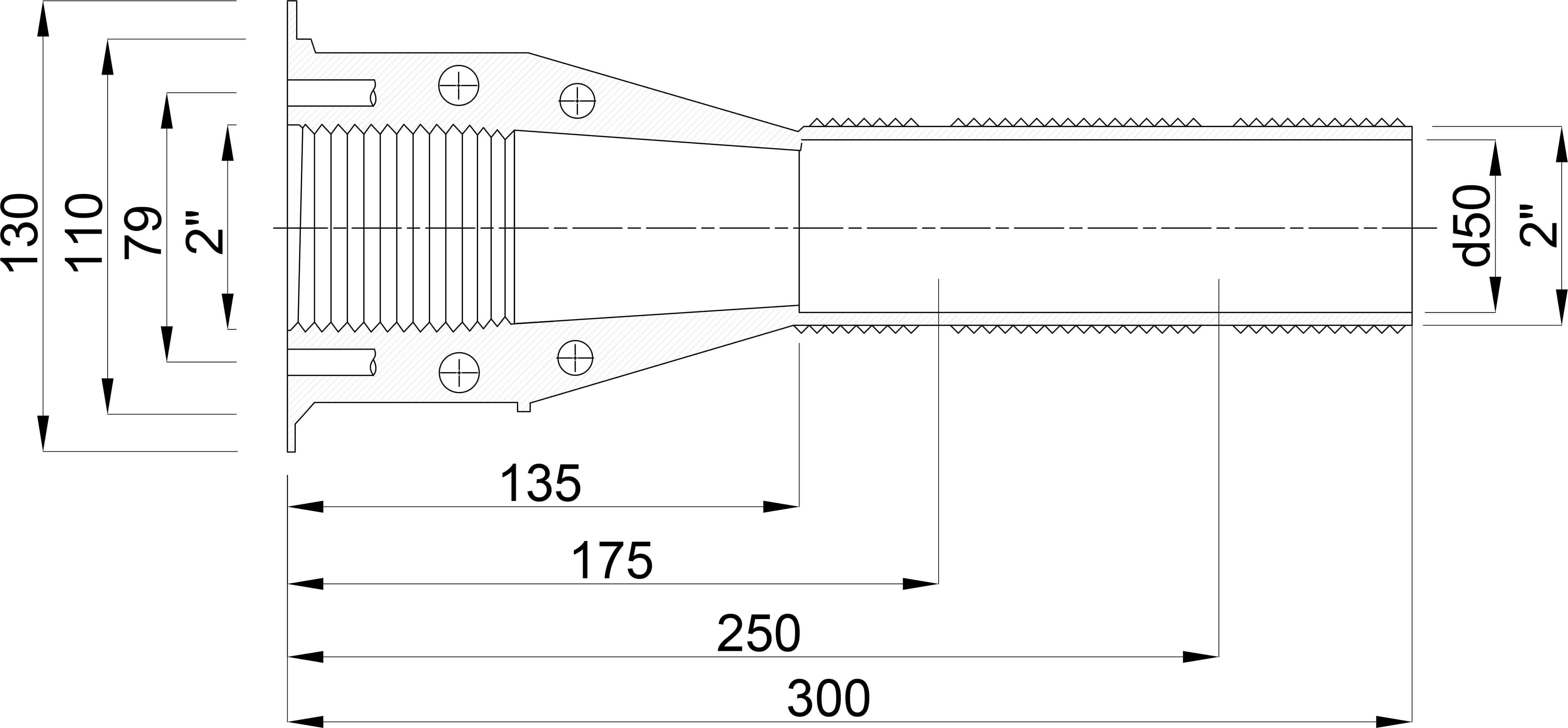 Ocean Wall conduit ABS 2" male thread x female thread white 300 mm