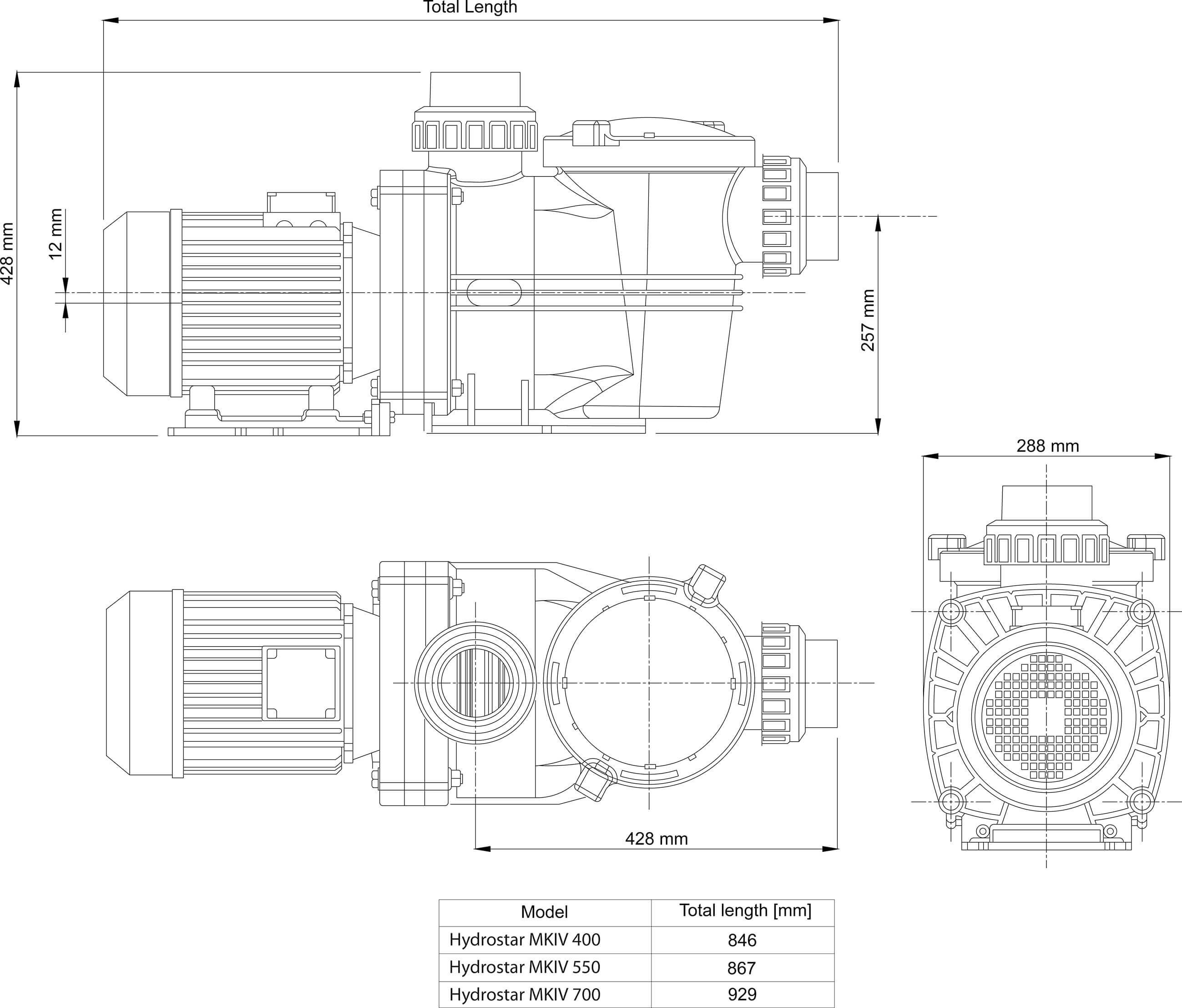 Waterco Commercial pool pump 90 mm glue socket 8,1A 400VAC black type Hydrostar MKIV 550