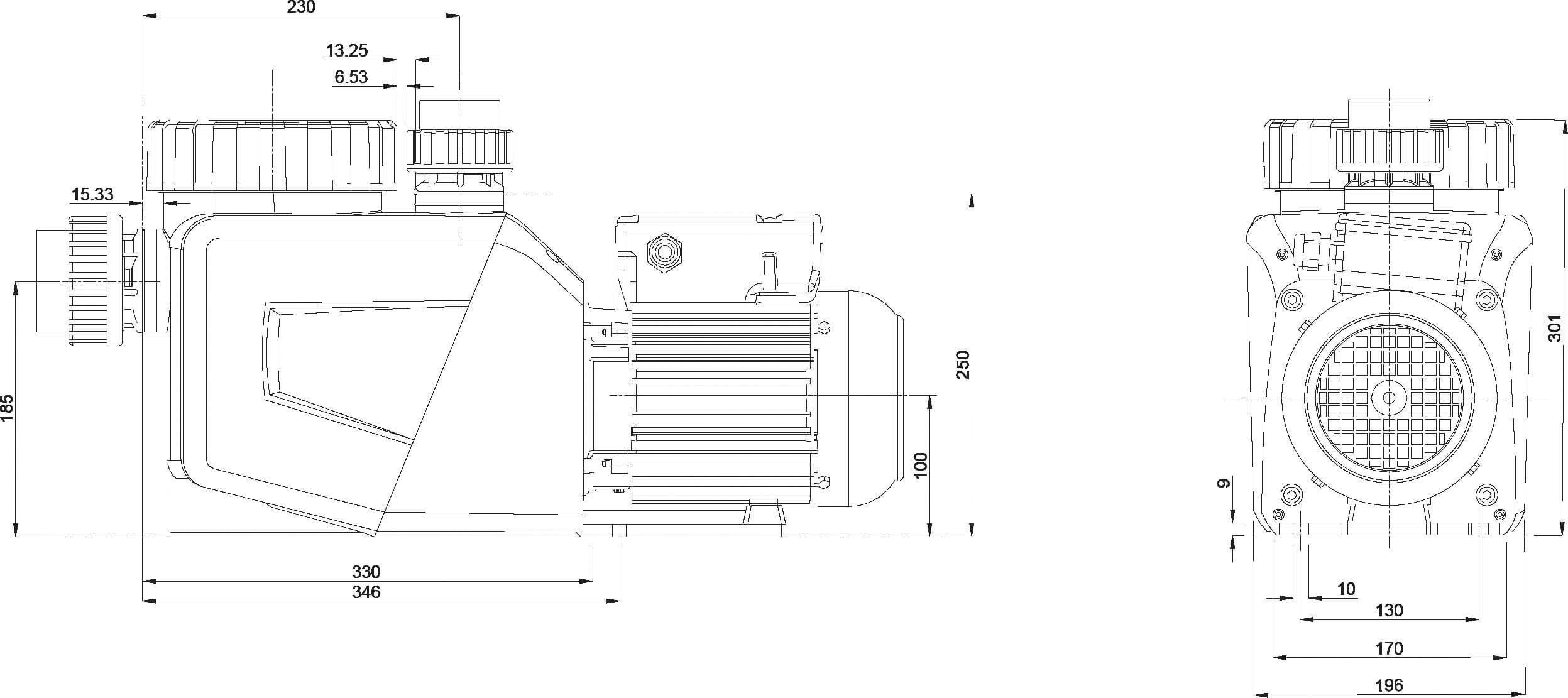 Universal pump design to match existing connections to Speck Badu 90/Eco VS & Badu Prime/Eco VS.