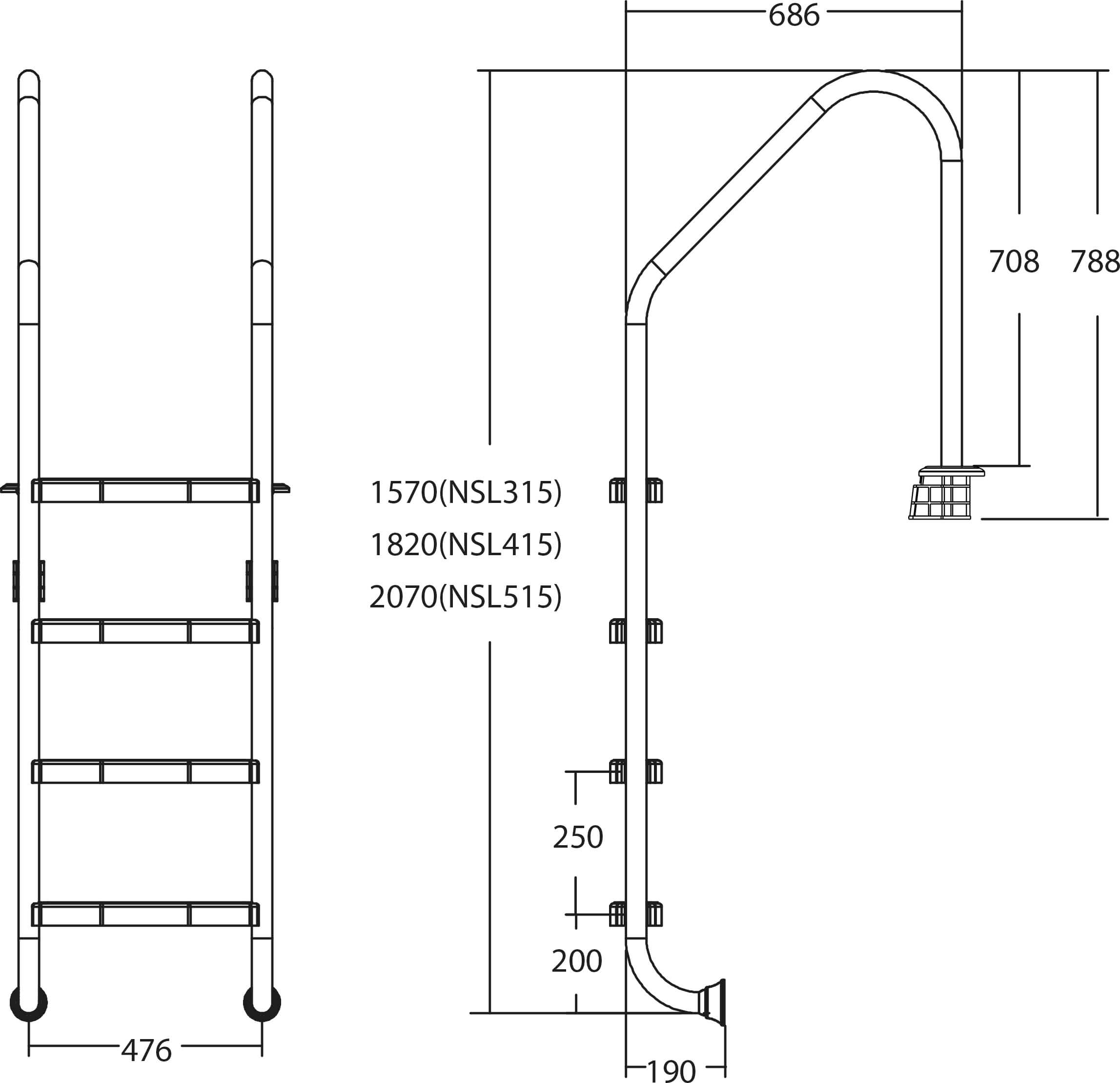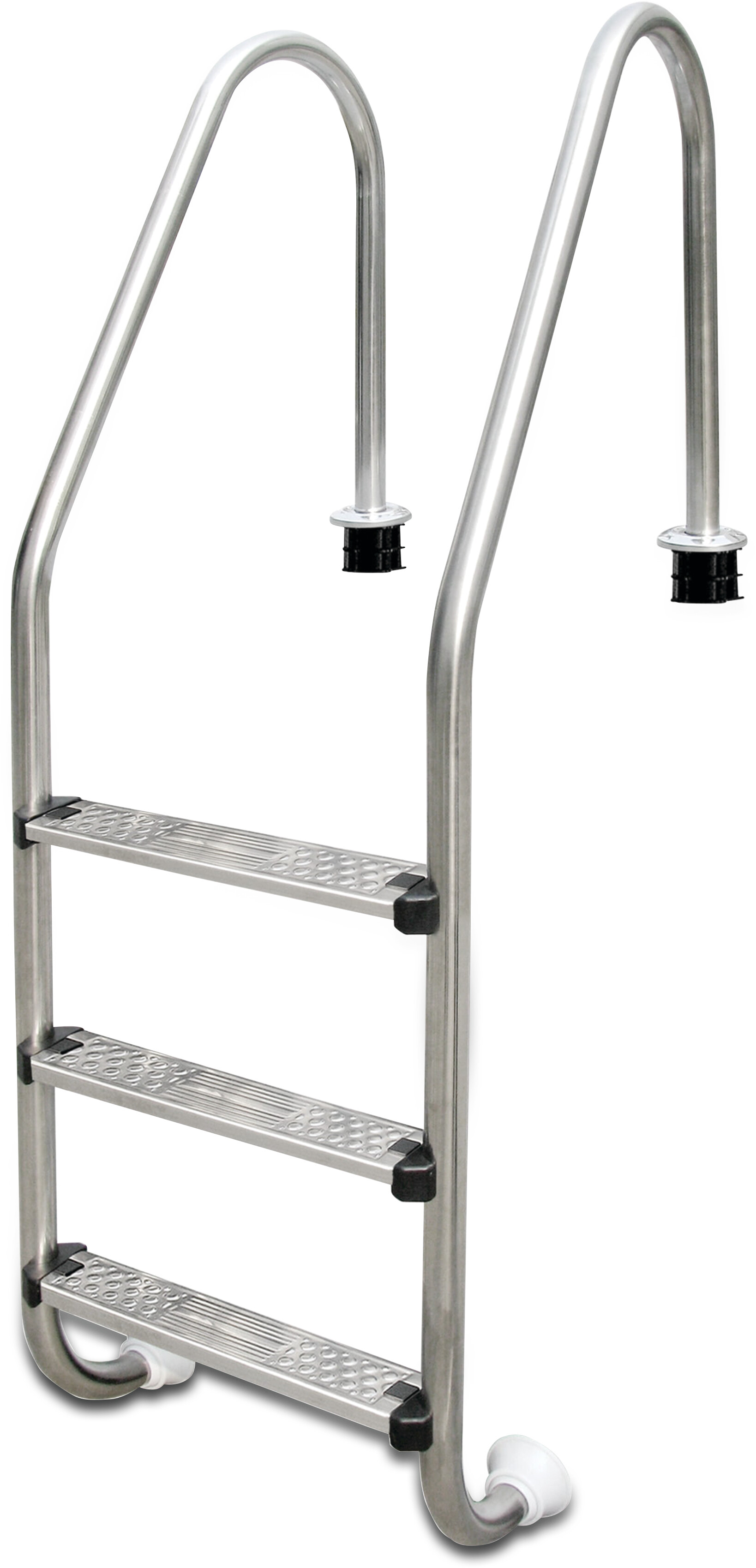 Flotide pool ladder (wide model) is attached 496 mm behind the pool edge. All ladders include an anti-slip pad.