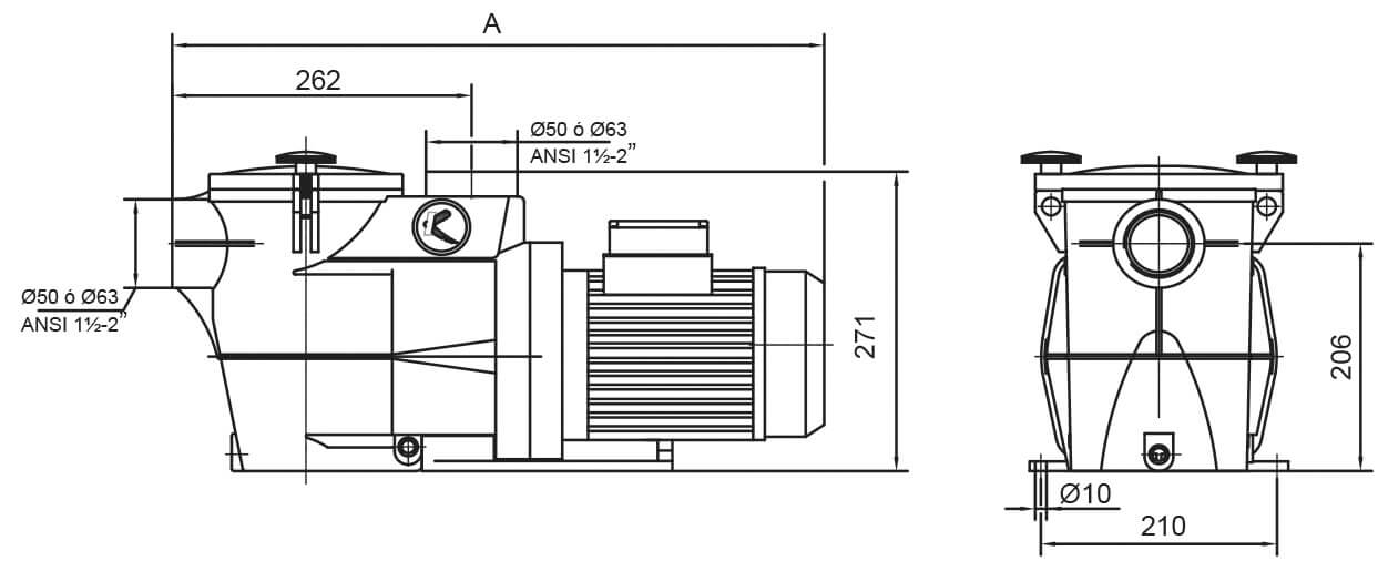Kripsol Pool pump 50 mm glue socket 5A 230VAC black type KSE 100 M 1HP