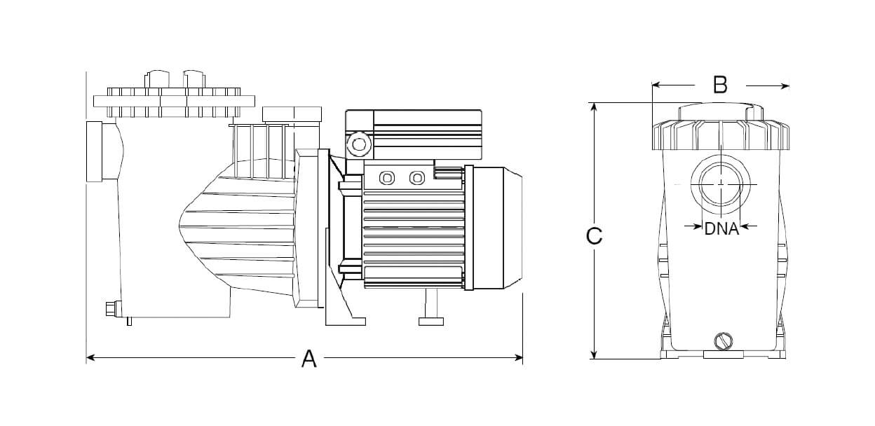 Self-priming pump for all sizes of domestic pools. The pump comes with a large pre-filter which, combined with excellent hydraulic performance, has a very large filter capacity. The transparent polycarbonate allows easy inspection of the filter pump due to its easy opening mechanism.