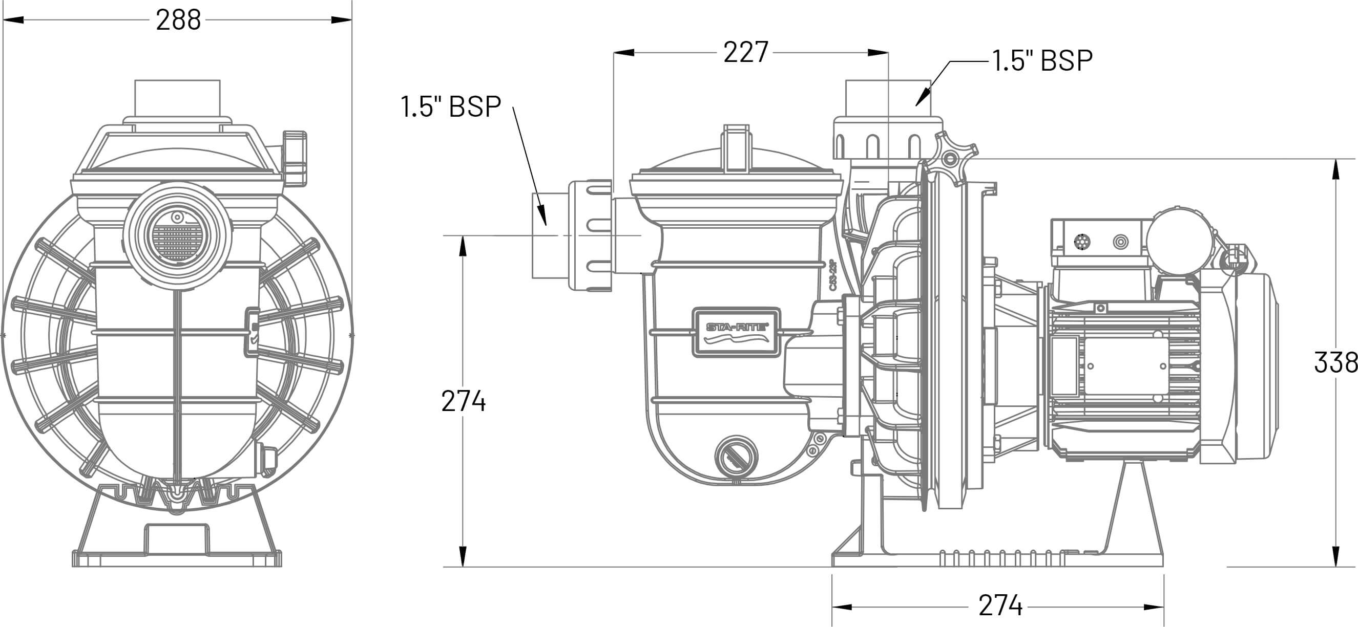 Sta-Rite Pool pump 1 1/2" female thread 230VAC black type P-STR-VS2m 1.5HP