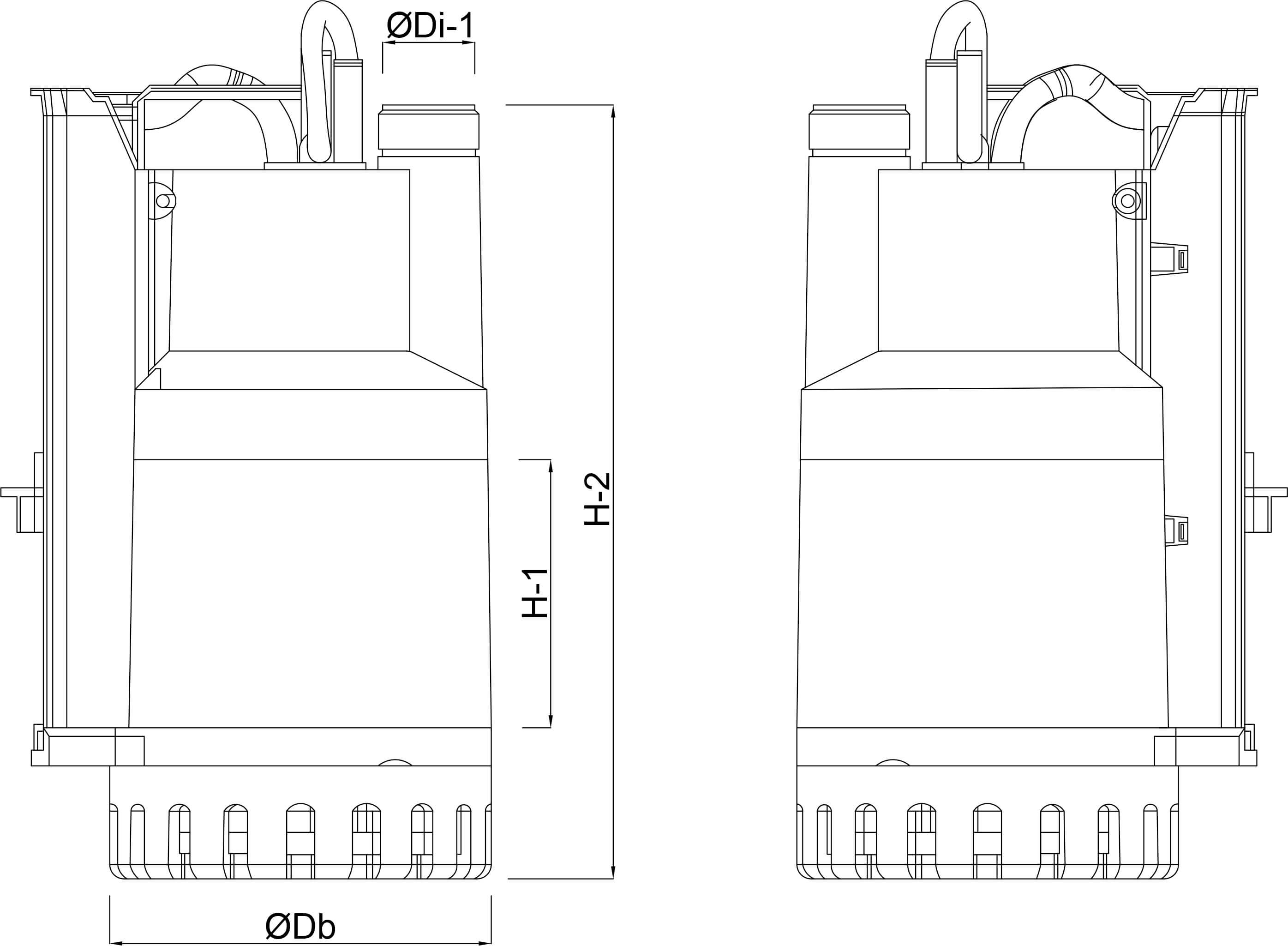 Submersible pump plastic 1" x 1 1/2" x 1" hose tail x male thread x hose tail 3A 230VAC blue type IPK 400