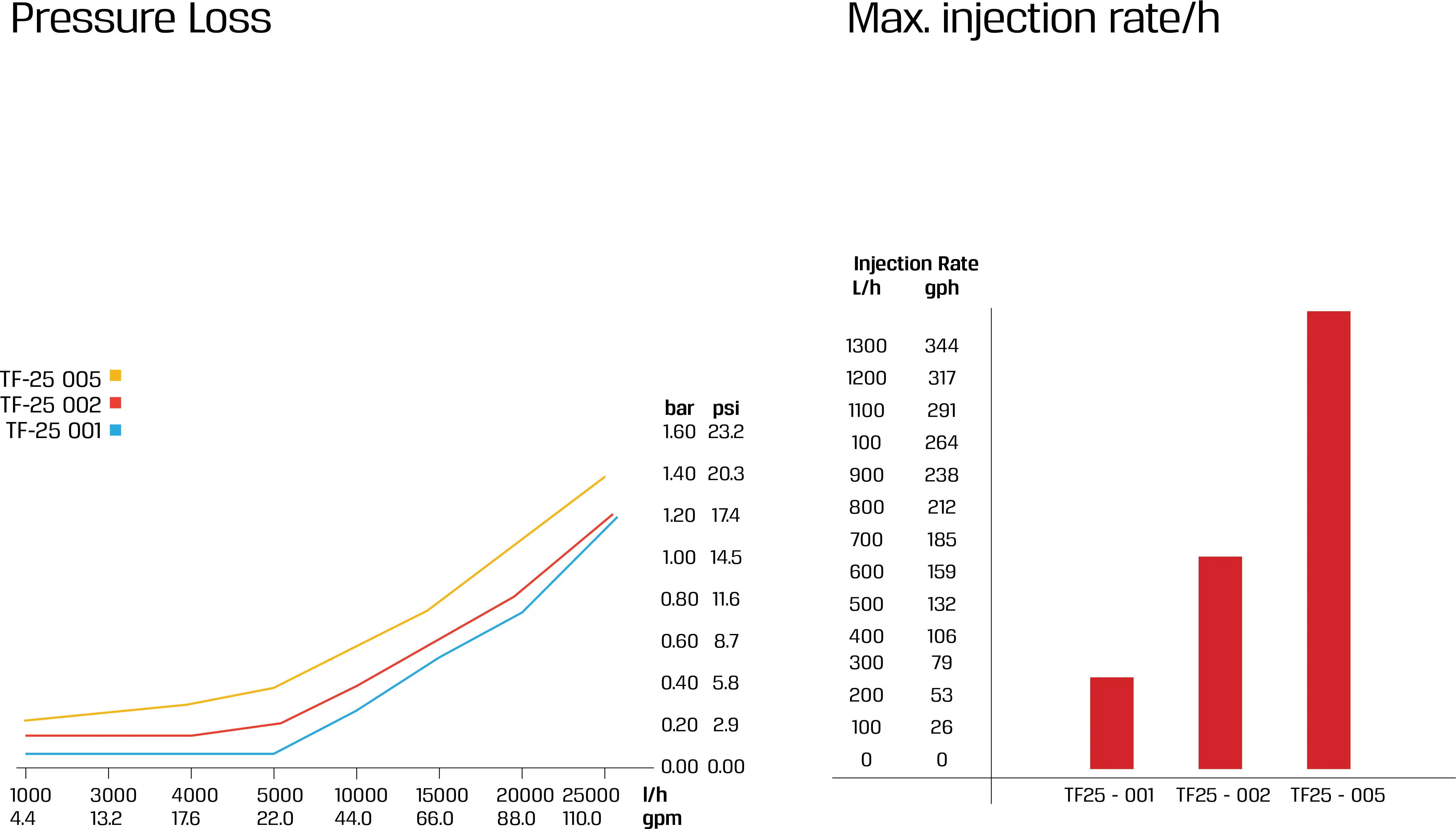 The suction tube length is 2.5m long and 10mm diameter for the type 0.3 - 2.5%.